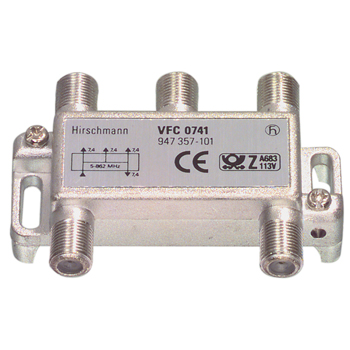 Viervoudig verdeelelement welke retour geschikt is en voorzien is F-aansluitingen. Voor het symetrisch verdelen van CAI signalen